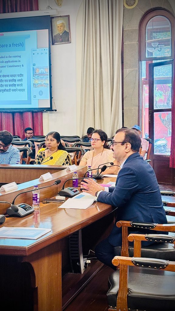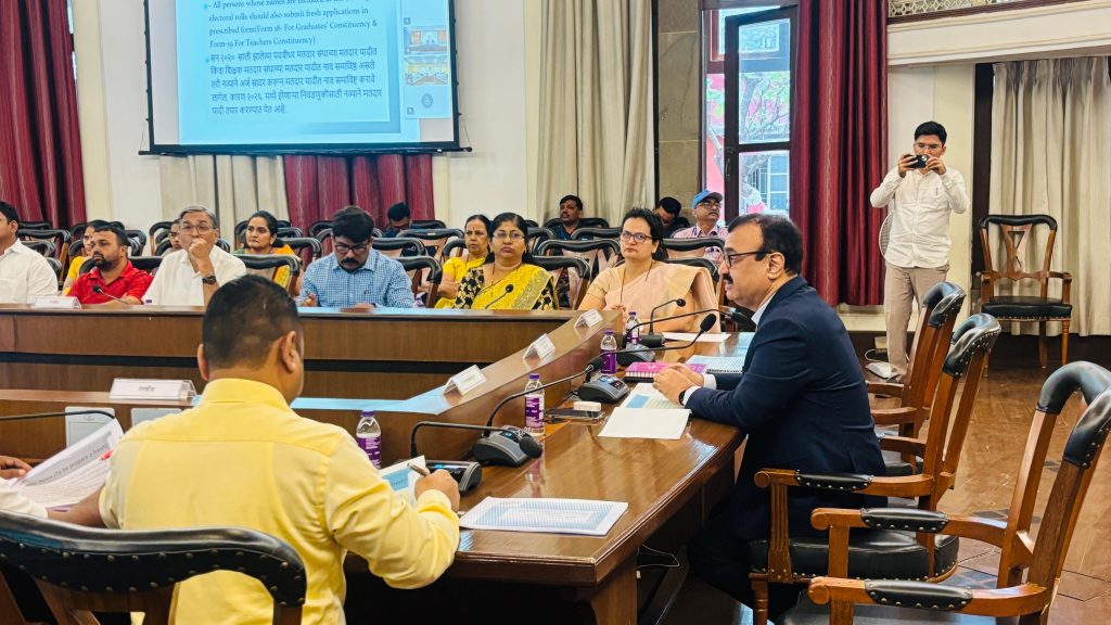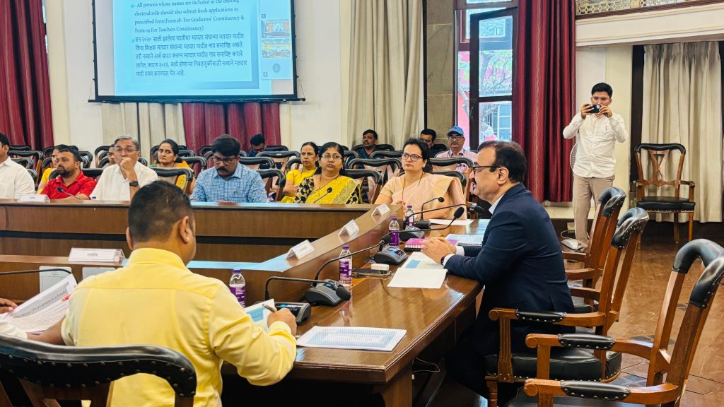 Program for preparation of new electoral rolls of graduates and teachers constituencies based on the qualifying date of November 01, 2025…. A meeting of national and state level recognized political parties, educational institutions as well as all the District Collectors of Pune division was held on 25.09.2025 at 11.00 am by the M. Divisional Commissioner, Pune and all the information about this election was given.